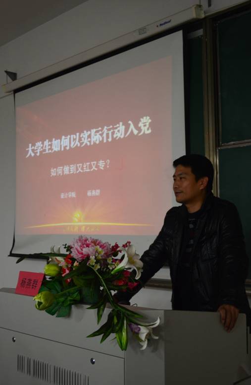开学典礼在庄严的《国歌》声中正式开始。贾白帆老师详细地介绍了党校学习的规章制度,使学员们对党校有了进一步的认识与了解。杨燕群老师宣布党校开课,并为学员作了第一讲“大学生如何以实际行动入党——如何做到又红又专”,就业余党校学习要求、如何向党组织靠拢的具体做法和步骤,并结合学院的实际和案例进行了深入浅出的分析,提出了很多宝贵的意见和建议,鼓励学员要逐步形成先进性的意识,以社会主义核心价值观来引领自己的成长,做一个有爱的热血青年,并以积极的心态认真对待党校的学习,以实际行动入党。