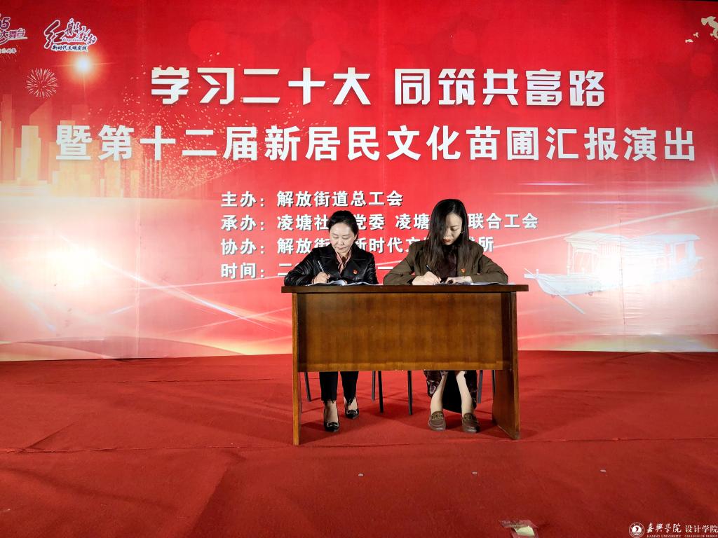 本次活动以《学习二十大,同筑共富梦》为主题,服设学生党支部书记刘洋代表支部认领凌塘社区“巧妇花园”项目,支部将发挥党员专业特长,携手凌塘社区开展社区墙绘、创意设计、艺术支教、关爱老人等志愿活动,共建美丽家园,传播正能量,同筑共富梦。随后,刘洋老师与凌塘社区党委书记徐惠琴签订共建协议,双方将以政治建设为统领,融合双方资源创新组织开展理论联学、活动联办、品牌联创等,进一步提升党组织引领力、组织力和服务力。