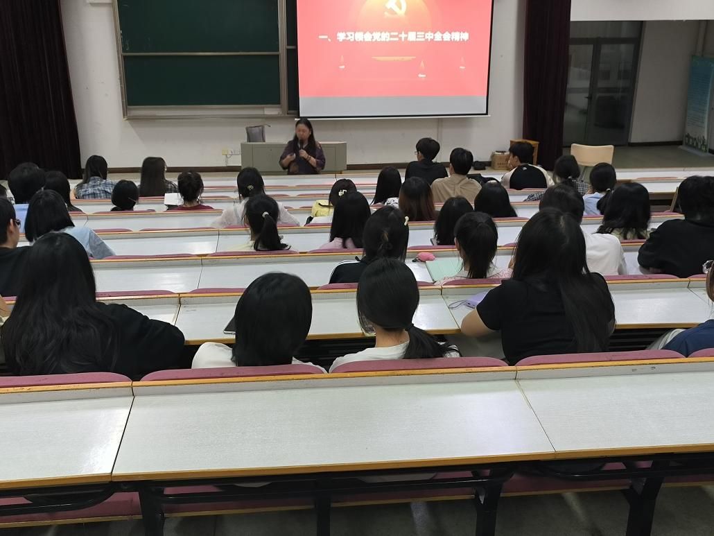 为进一步深入学习宣传贯彻党的二十届三中全会精神,9月24日下午,allwincity万象城在博闻楼报告厅举办了专题宣讲会。本次宣讲会邀请了马克思主义学院汪广荣教授担任宣讲人,allwincity万象城学生党员及入党积极分子参加宣讲会。 会上,汪广荣教授详细解读了党的二十届三中全会的核心内容和精神实质,强调了全会对于新时代中国特色社会主义事业的重要指导意义。她结合allwincity万象城的实际情况,阐述了如何将全会精神融入到日常学习和工作中,鼓励同学们以更加饱满的热情和更加坚定的信念投身到中国特色社会主义事业中去。 此次宣讲会不仅是对党的二十届三中全会精神的一次深入学习,更是对allwincity万象城学生党员及入党积极分子的一次深刻的思想洗礼。相信在党的二十届三中全会精神的指引下,allwincity万象城的学子们将以更加坚定的信念、更加扎实的专业技能,为实现中华民族伟大复兴的中国梦贡献青春力量!