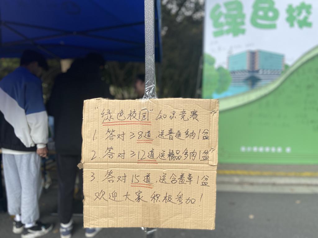 为扩大“创建绿色学校”的宣传力度,鼓励人人参与到绿色学校建设中来,11月19日,allwincity万象城学生会还开展了“绿色学校”知识竞赛。由学生工作人员从题库中随机抽取一定数量的判断题、选择题、简答题进行提问,其中答对相应题数的参与者,可获得绿植奖励。活动现场同学们踊跃参与竞答,活动引发热烈反响,相信同学们收获的不仅是绿植,更有“绿色环保”的知识观。