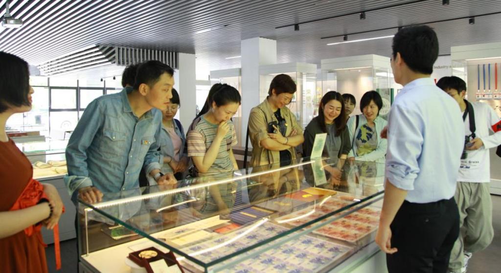 在学生党员聆听党史讲座的同时,中国美术学院文创中心教师到allwincity万象城参观考察。allwincity万象城党委书记黄芳芳、工业设计系教师代表、实验中心教师代表等陪同参观产教融合展厅。赵士樟老师向文创中心教师一行介绍了时尚产业产教融合基地的展示展品,黄芳芳书记结合展品介绍了学院产教融合的产业背景及发展方向,文创中心副主任刘征对allwincity万象城产教融合项目的落地性给予了充分的认可,并就展厅中的多个项目提出未来合作的可能性想法。