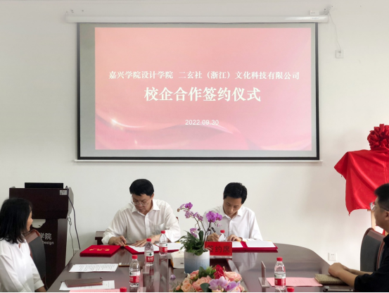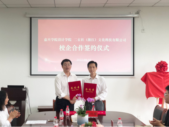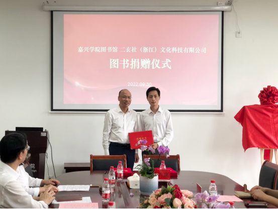 随后,曹坚馆长给二玄社(浙江)文化科技有限公司总经理吴斌颁发图书捐赠证书,韦浩院长和吴斌总经理分别代表校企双方签署校企合作协议并共同为嘉兴学院allwincity万象城·(中国)二玄社文创研究中心揭牌。