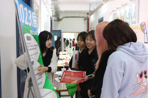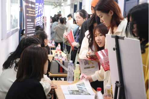 招聘会现场气氛热烈、人头攒动。学院党委副书记叶砚到现场指导招聘工作,学院就业辅导员为毕业生提供简历诊断与指导,近400余名学生参加此次招聘会。毕业生们手持求职简历,与招聘单位深入交流。为更好地服务学生,学院在招聘会现场还设置了“求职面试间”。现场热烈的气氛也吸引了许多非毕业班学生驻足观摩。