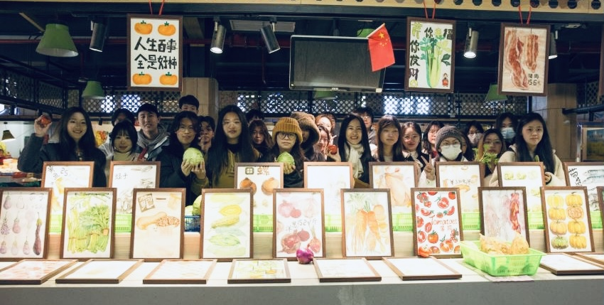 本次画展由学院周琳老师指导,共计展出了环境设计231班同学共同绘制完成的50余幅作品。作品内容取材于农贸市场,为了这次画展,同学们多次前往菜市场进行实地考察,通过设计理念的再次加工,最终产生了一幅幅写实又颇具创意的作品。“感受到了菜市场中的生活气息,体会到真正的将艺术融入生活当中,通过学习,我不仅在艺术技能方面有了提升,还在思维和审美方面得到了锻炼。”环设231的金欣桐说。