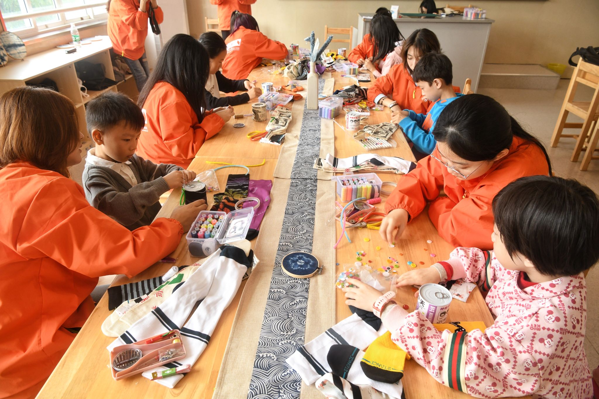 本次课程为第一讲,主题是《袜织小生命》。志愿者向现场小朋友们展示了团队的袜偶作品,并告诉大家以袜子为原材料是因为袜子是每个人的贴身物件,它虽不起眼但必不可少,只有穿上合脚的袜子才能选择鞋履,踏上人生旅途。接着,志愿者讲述了袜偶与星星的孩子的奇缘,并指导现场的所有小朋友制作属于自己的袜偶。此次的袜偶制作以盆栽装饰为目的,完成了袜偶的设计缝制后,小朋友们将种子埋入土壤,播下对袜偶课程的希望,并承诺将悉心呵护自己的盆栽,待到结课前把它们拿来课堂,与同学们分享劳动成果和体会。