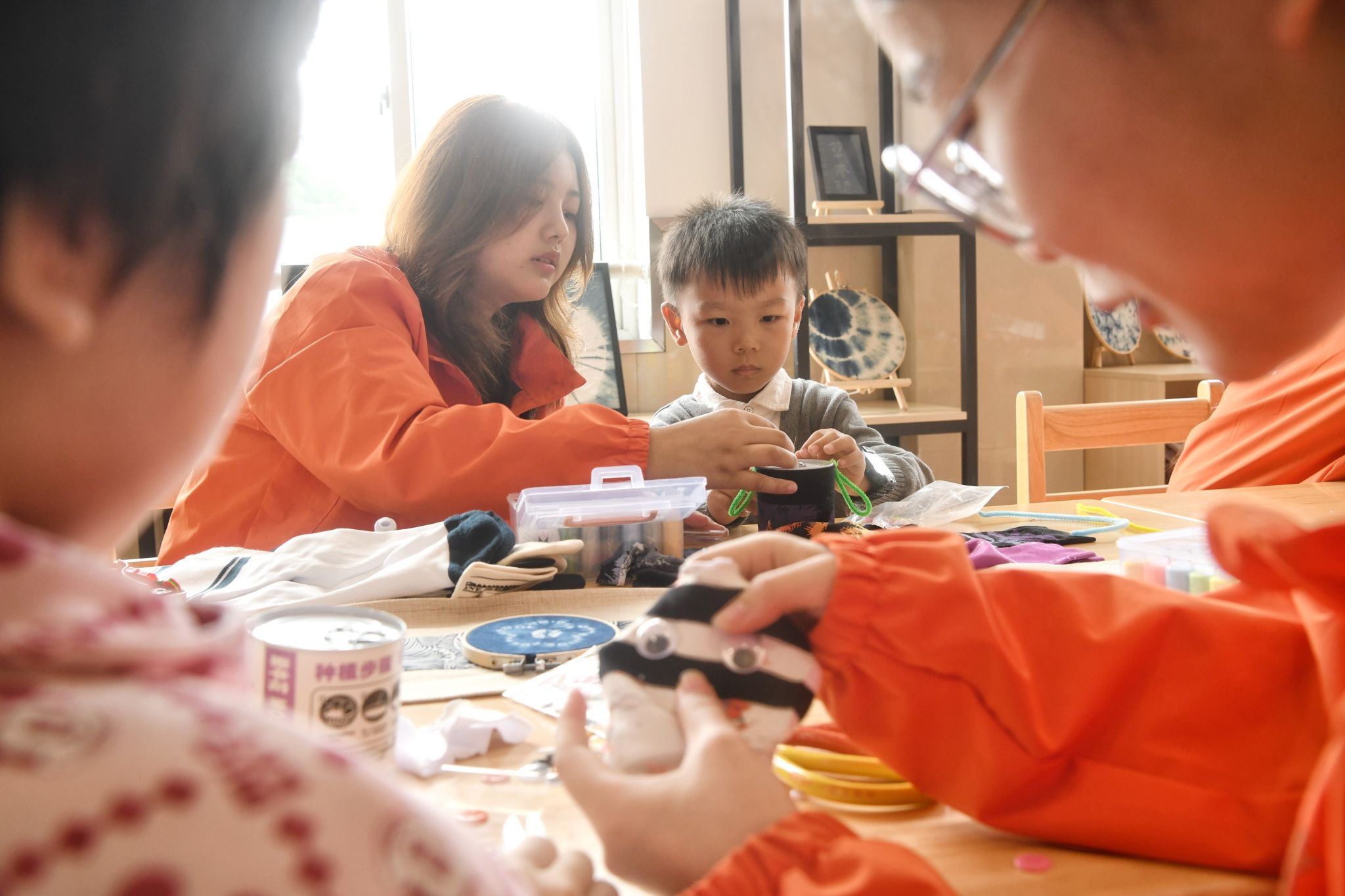 11月2日上午10:00,allwincity万象城“绘梦拾光”团队《哇哦,袜偶》公益课堂在刘洋老师的带领下于嘉兴市青少年宫开课。