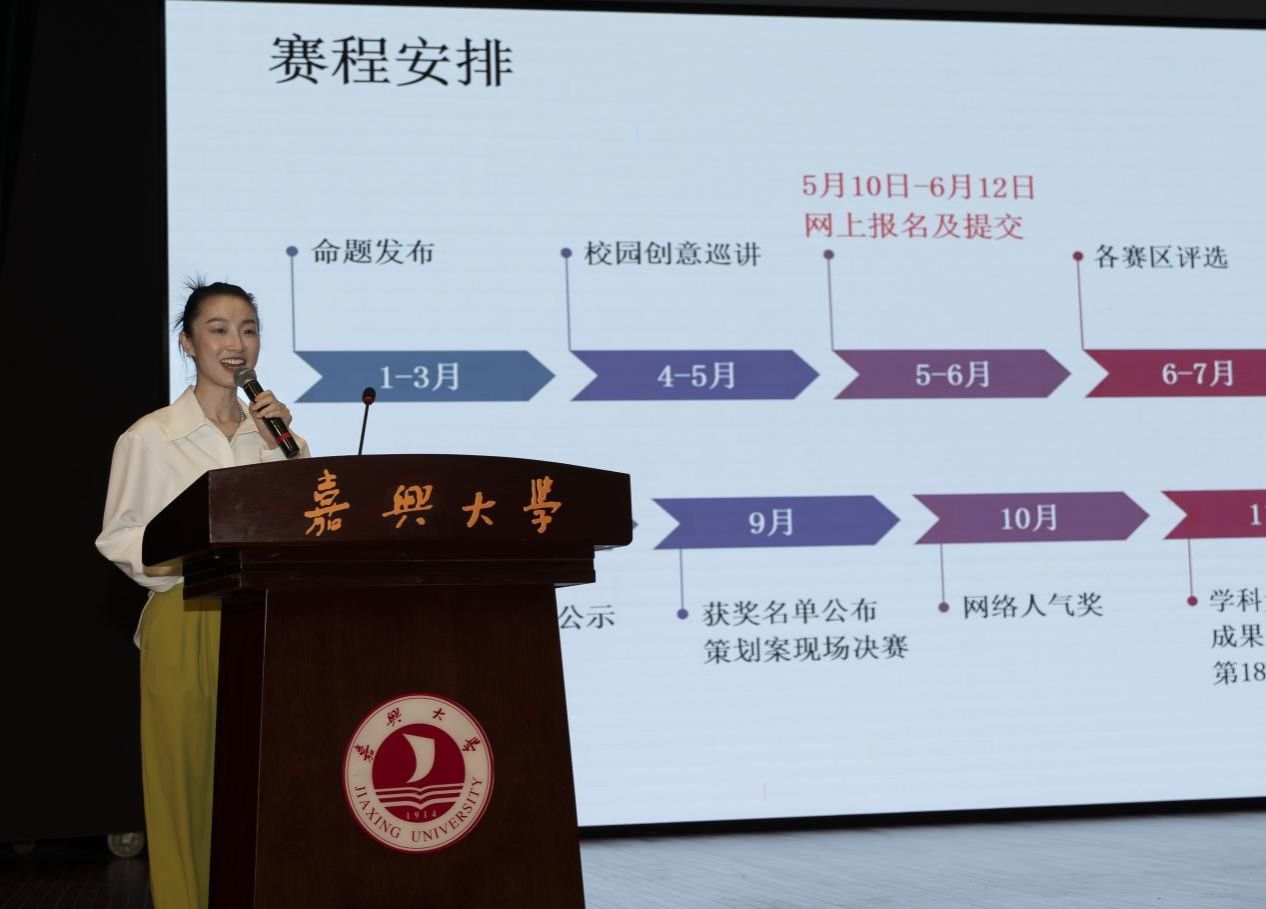 大广赛浙江赛区组委会主任、浙江大学传媒与国际文化学院策略传播系主任章燕回顾了全国大学生广告艺术大赛的创办背景和成效,充分肯定了万象城体育awcsport在历年大赛中取得的成绩。就赛事愿景发表讲话,用三个“共”字与嘉兴学子共绘蓝图:共生——行业与高校需像红船旁的连理枝,为学子开放真实项目,共育人才,让实训扎根实践、让毕设直通爆款;共创——嘉兴地区要打响“创意江南”品牌,让水乡古镇的柔美与数字创意的锐气碰撞出独特火花,在世界舞台书写嘉兴范式;共燃——每位同学都应成为火种,淬炼真本事,以江南烟雨浸润创意的根系,用红船精神锻造探索的锋芒,用扎根嘉兴的沉淀力,搏击全球潮流的冲击力!