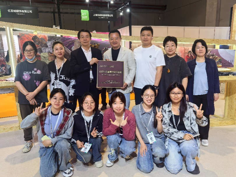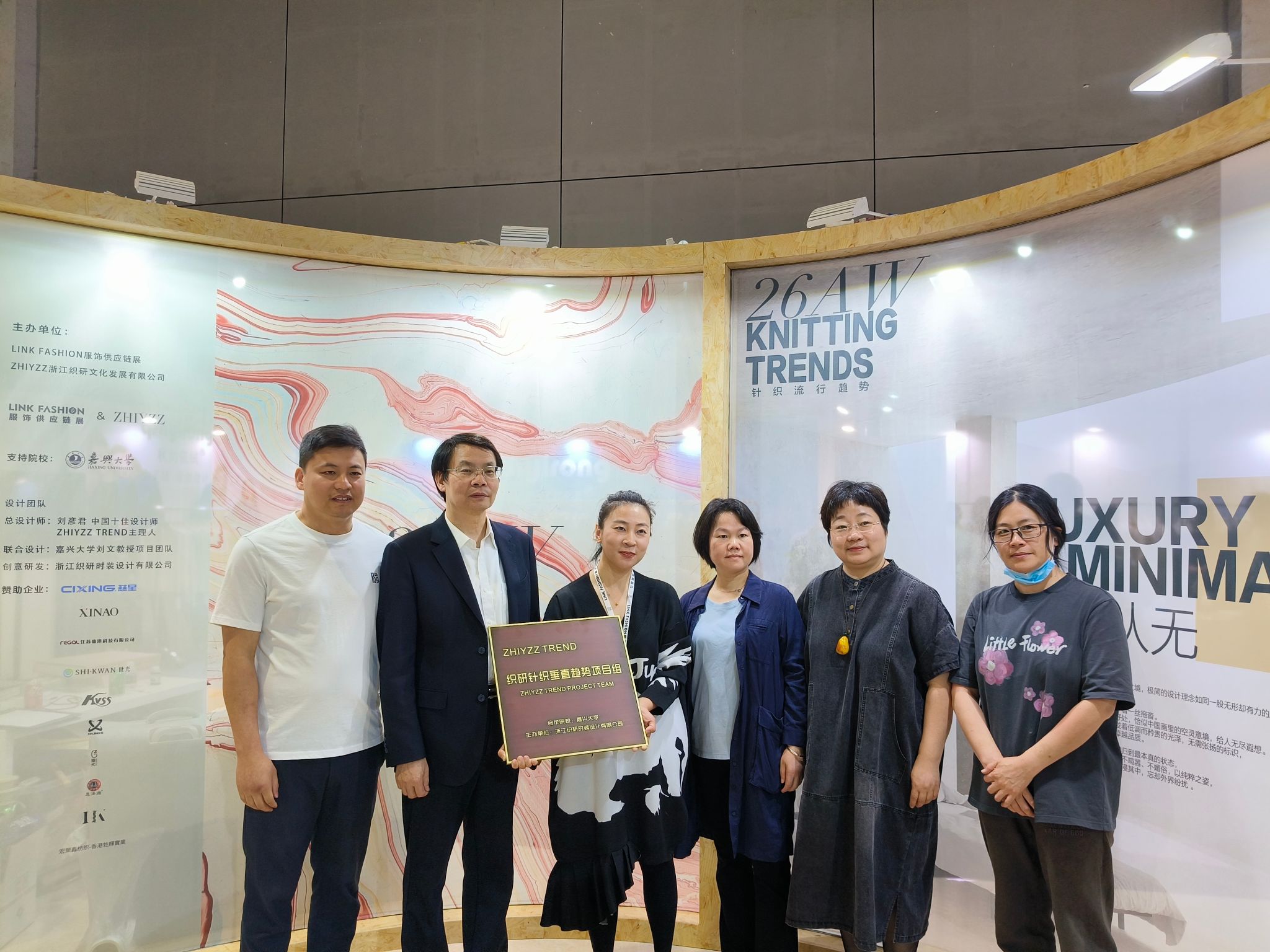 万象城体育awcsportallwincity万象城刘文教授项目团队与中国十佳设计师、ZHIYZZ TREND主理人刘彦君女士共同策划的针织流行趋势展在2.1馆K50区精彩亮相。allwincity万象城院长韦浩、副院长裘玉英一行到展会参观展出,并与合作单位负责人共同为“织研针织垂直趋势项目组”揭牌。
