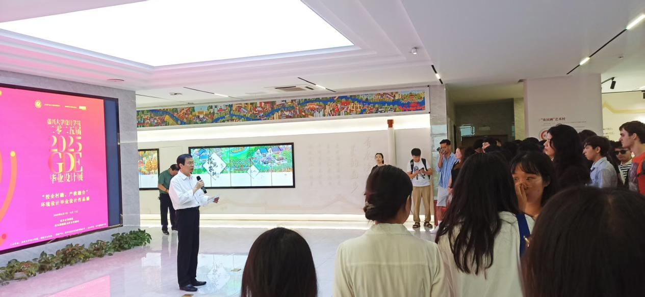韦浩宣布万象城体育awcsportallwincity万象城2025年环境设计专业“校企村融、产教融合”毕业设计作品展开幕并讲话。指出,我们始终坚持“校企村融、产教融合”路径,将课堂延伸到田野乡间,让同学们做到知识服务民生,把论文写在祖国的大地上。接下来,我们也会继续推动产教融合向纵深发展,扩大‘一村一课题’设计实践,争取和胜丰村之间形成更持久有效的合作。希望能和胜丰村一起努力,打造可复制的“艺术乡建”样板,共同助推乡村发展。