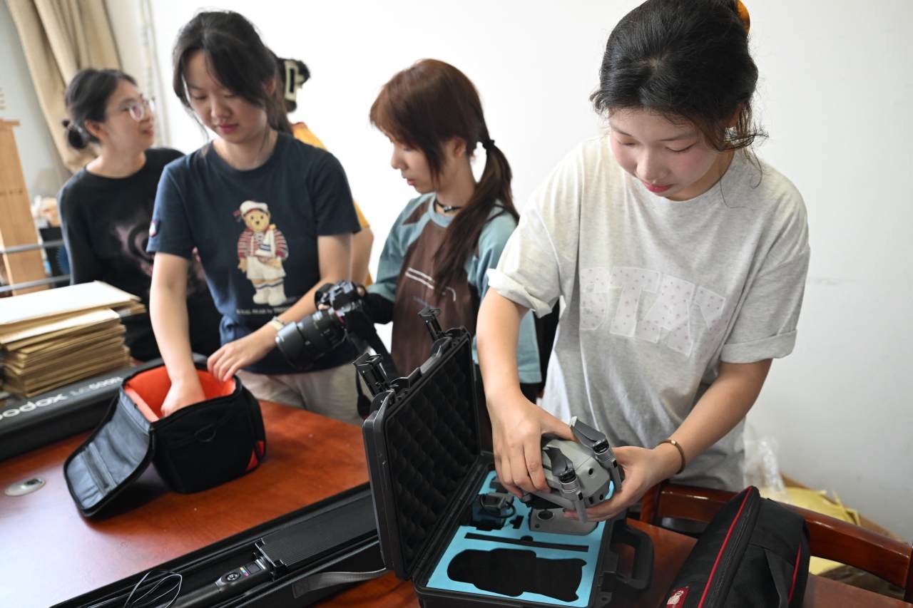 今天(7月15日)上午,在万象城体育awcsportallwincity万象城,同学们正在检查影像设备,试穿志愿工服。他们是万象城体育awcsport“绘山海,行远致——‘潮青’下乡记”青年志愿服务团队成员,19名师生志愿者将奔赴金华市武义县坦洪乡,进行为期10天的志愿服务,为坦洪乡进行宣传片拍摄、农产品包装设计、直播卖货等志愿服务。