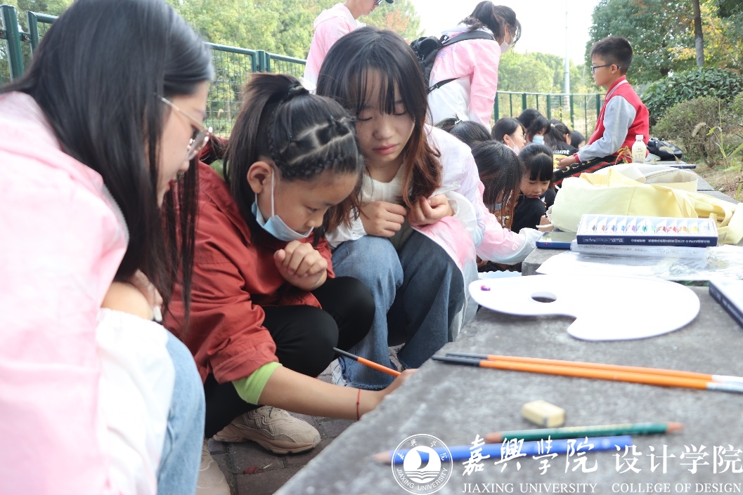 此次志愿服务以“敬有礼”“学有礼”“信有礼”“亲有礼”“行有礼”“帮有礼”“仪有礼”“网有礼”“餐有礼”“乐有礼”为主要内容的“浙风十礼”为主题,在设计专业志愿者的指导下引领社区儿童用画笔描绘自己对“十礼”的理解,以艺术形式呈现在湘城社区里人流量最高的区域。戚梦芸小朋友在志愿者的帮助下,设计了礼敬五星红旗,常怀爱国之心为表现形式的“敬有礼”作品,她说自己很早就申请加入了中国少年先锋队,长大以后还要入团入党;刘嘉果小朋友通过尊老爱幼,以小家建大家的形式描绘了“亲有礼”画面。
