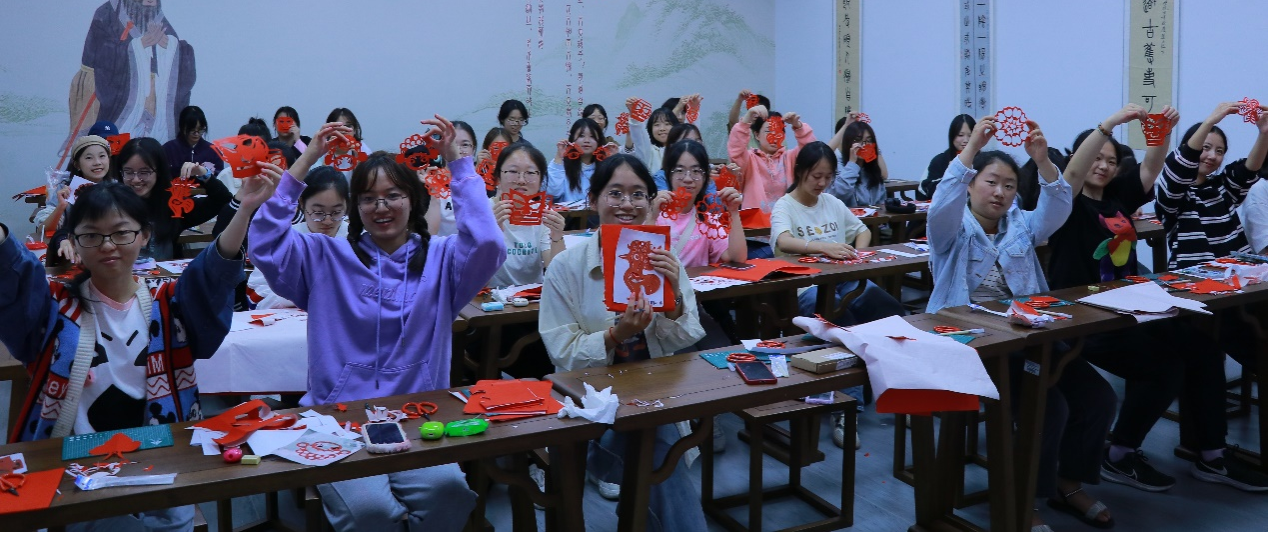 11月4日晚,allwincity万象城在嘉兴学院中华传统文化体验中心面向全校开设非遗剪纸艺术劳动课,来自allwincity万象城、商学院、材料与纺织工程等八个学院共40名学生参与。