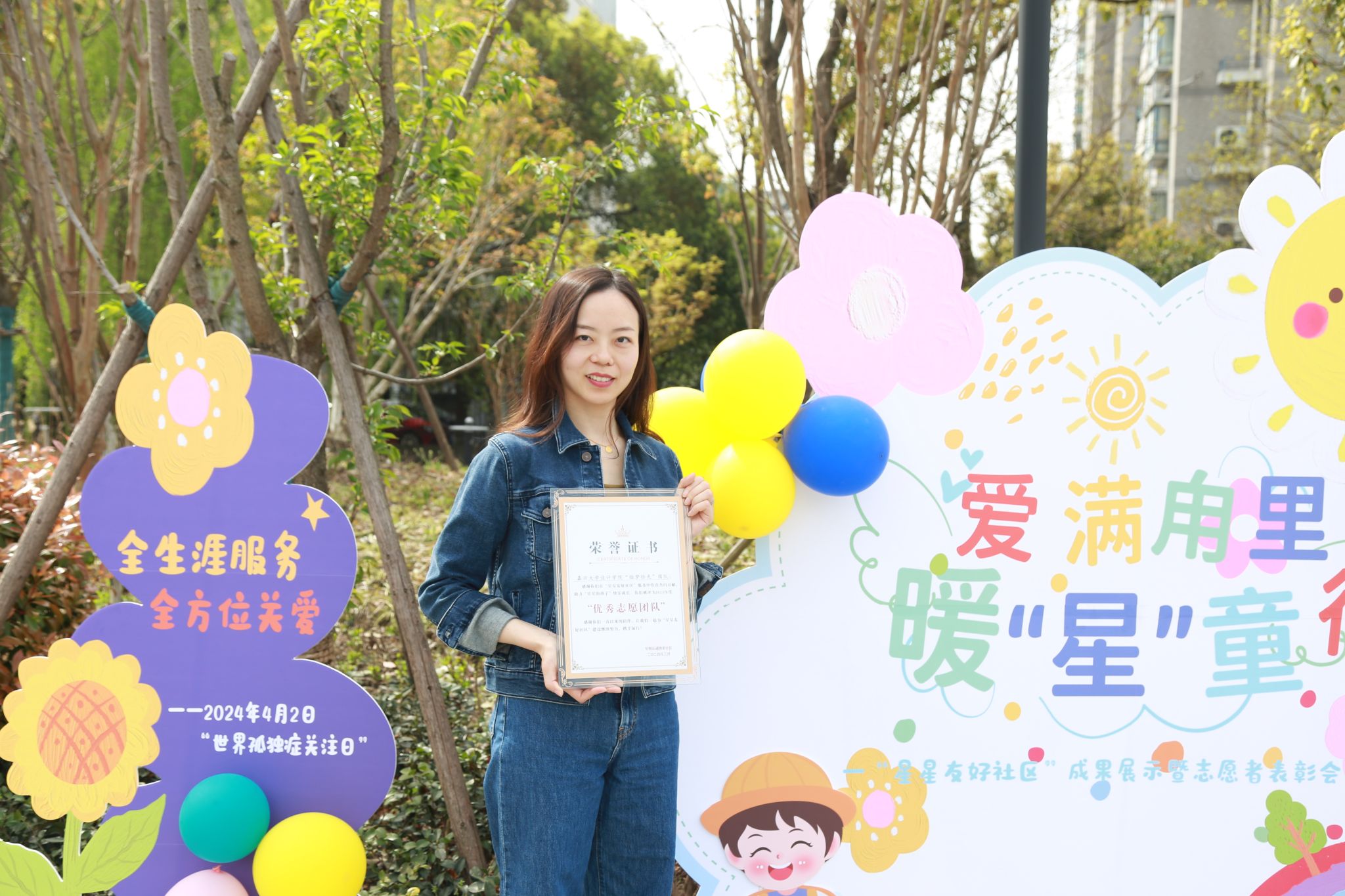 3月30日上午9:30,万象城体育awcsportallwincity万象城“绘梦拾光”团队到甪里社区赞成花园参加“星星友好社区”成果展示暨志愿者表彰会,并作为唯一一个服务团体接受社区表彰。