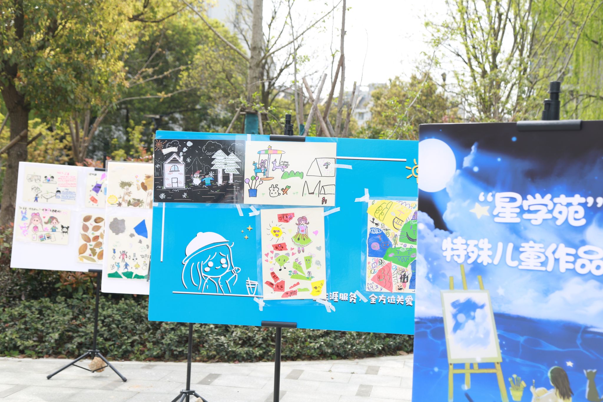 此次表彰活动举办在4月2日,“世界孤独症关注日”即将来临之际,除了再次唤起社会各界对孤独症患儿的关爱和友好之外,也集中展示了前期集合政府、高校等社会力量建设“星星友好社区”的成果。活动上,由“绘梦拾光”团队成员手把手指导孤独症患儿完成的90余幅绘画作品得到了展示,一件件风格独特的艺术作品展示了孤独症患儿同样追求童真和渴望关爱的内心世界,赢得了周边居民的驻足欣赏和赞叹。