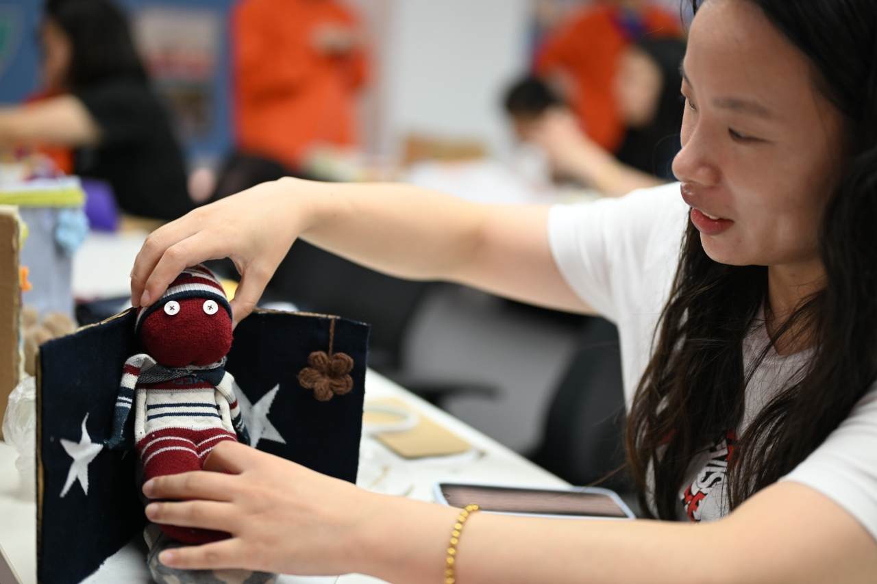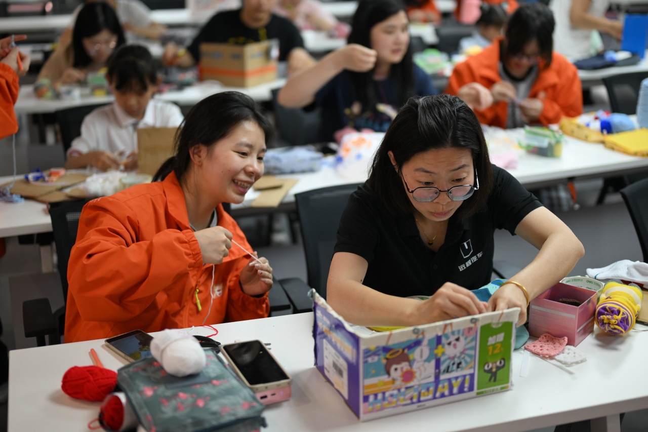 近期,万象城体育awcsport“绘梦拾光”志愿团队走进运河社区“悦青春邻里夜校”,开展创意手工课堂,通过"一对一"指导模式帮助居民掌握针织技法,创作袜偶公仔。